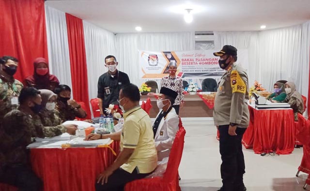 Arosuka, SuhaNews. Kapolres Solok AKBP Azhar Nugroho, SH, S.I.K, M.Si, bertindak sebagai KAOPSRES pada proses pendaftaran Bakal Calon (Bacalon) Bupati dan Wakil Bupati Solok di kantor Komisi Pemilihan Umum (KPU) Kab. Solok di Koto Baru, Sabtu (5/9).