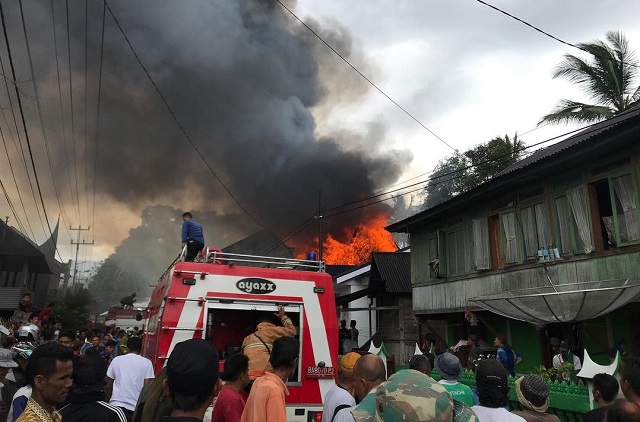 Solok, SuhaNews – Pada peristiwa kebakaran yang terjadi di Simpang Guci nagari Kinari kecamatan Bukit Sundi Kabupaten Solok, Minggu (12/11) siang, menghanguskan 3 rumah gadang, 4 rumah permanen serta dua bangunan warung.