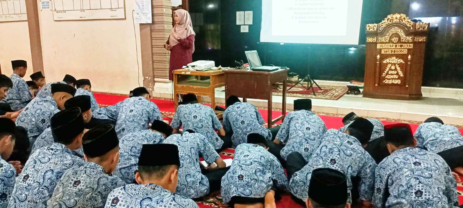 Pemateri Public Speaking Ustazah Wermayuda, S.PdI. menyampaikan bahwa sebagai siswa madrasah yang mampu menjadi juru dakwah di tengah – tengah masyarakat, materi public Speaking harus dapat dikuasai dan dipahami oleh siswa siswi Madrasah, ujarnya.