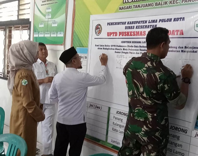 Kepala KUA Kecamatan Pangkalan Koto Baru, Suherman, Selasa (28/2),di Puskesmas Rimbo Data, Nagari Tanjung Balik, menandatangani perjanjian kerjasama dengan sejumlah pejabat lintas sektoral, yaitu Camat, Kapolsek, Koramil, Kacabjari dan Kepala Puskesmas Rimbo Data.
