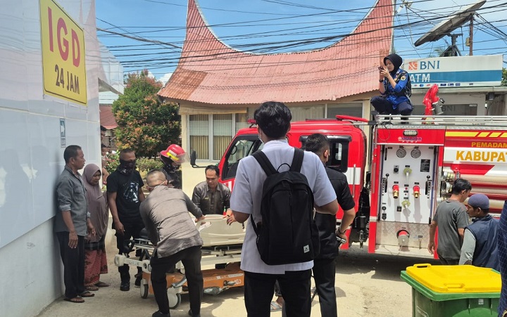 Setelah kayu yang menimpa korban berhasil dipindahkan oleh tim, korban langsung dibawa ke RSUD M. Natsir dengan menggunakan armada dari Pos Koto Baru yang desaingnya doubla cabin dan korban berada di bangku belakang.