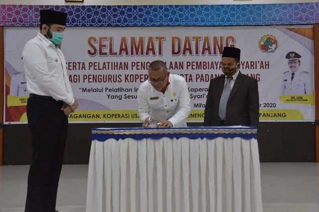 Sementara Kepala Dinas Perdagkop dan UMKM, Arpan, SH mengatakan bahwa Pelatihan Pengelolaan Pembiayaan Syariah Bagi Pengurus Koperasi di Kota Padang Panjang tahun 2020 ini dilaksanakan selama empat hari, 04-07 November 2020 di Aula Mifan Water Park.