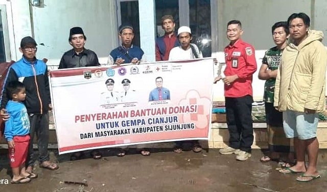 Bantuan dari masyarakat Kabupaten Sijunjung, yang dikumpulkan melalui PMI diberikan untuk pembangunan masjid Balandongan, Desa Padaluyu Kecamatan Cugenang, Kabupaten Cianjr.