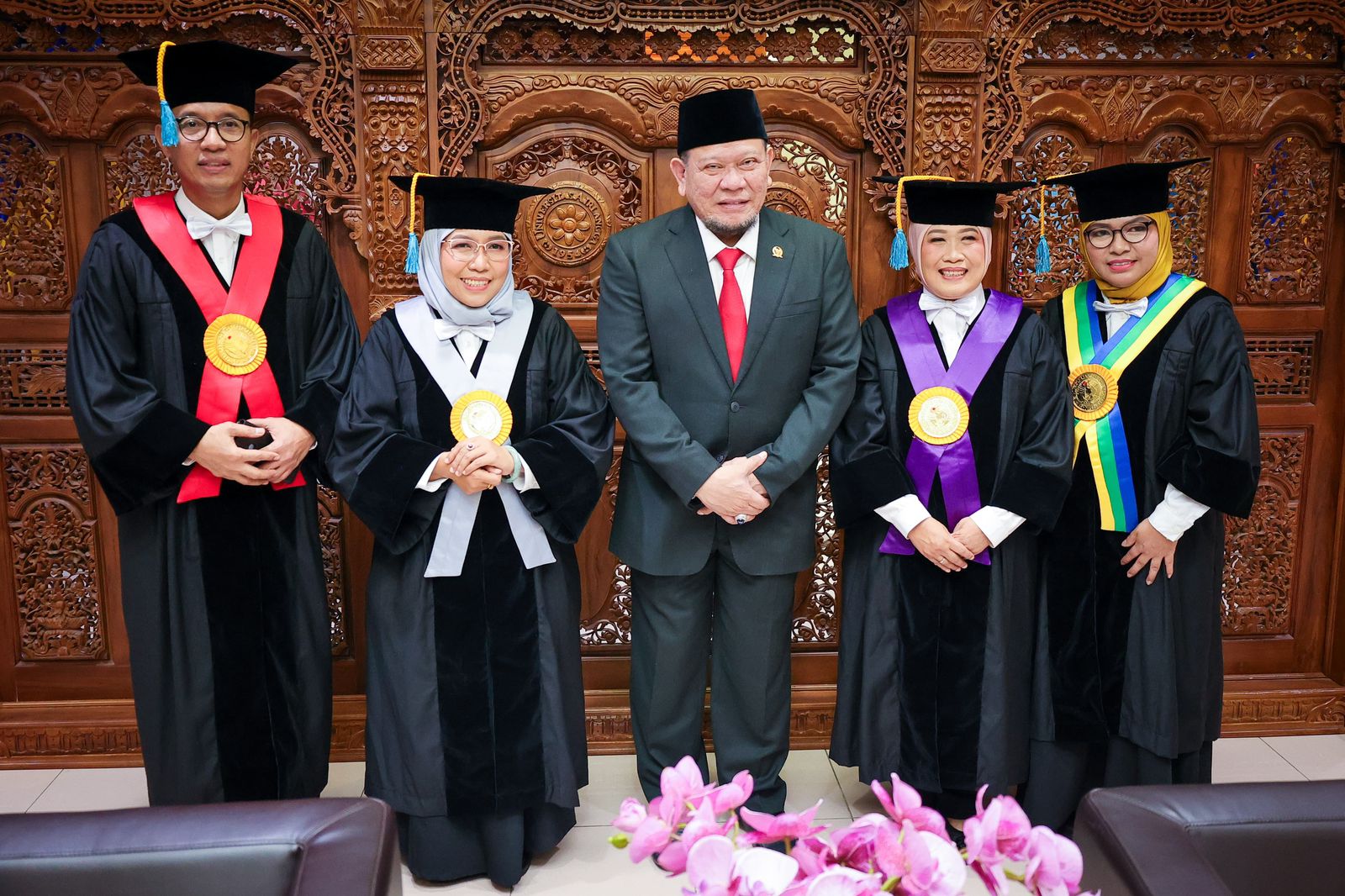 SuhaNews – Ketua DPD RI, AA LaNyalla Mahmud Mattalitti menghadiri pengukuhan Guru Besar empat orang profesor di Universitas Airlangga (Unair) Surabaya. Mereka adalah Prof Dr Suparto Wijoyo, SH., M.Hum, Prof Dr Ririn Tri Ratnasari, SE., M.Si, Prof Dr Dra Ec Thinni Nurul Rochmah, M.Kes dan Prof Dr Wiwied Ekasari, M.Si., Apt.