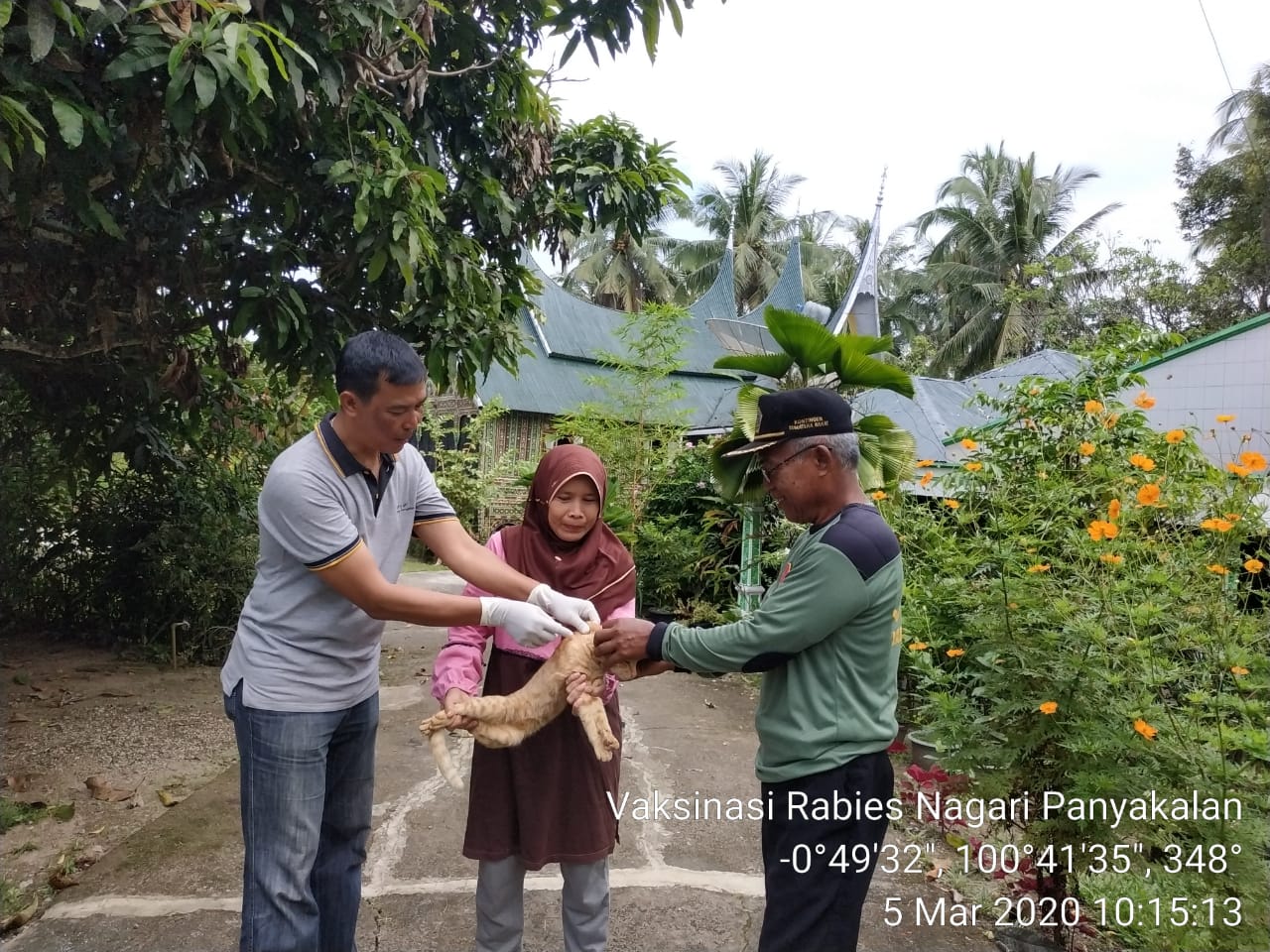 Kamis (5/3) Drh. Rahmike Fajrina dan Rhodes MZ datang ke nagari Panyakalan memberikan vaksin rabies gratis untuk hewan peliharan masyarakat.