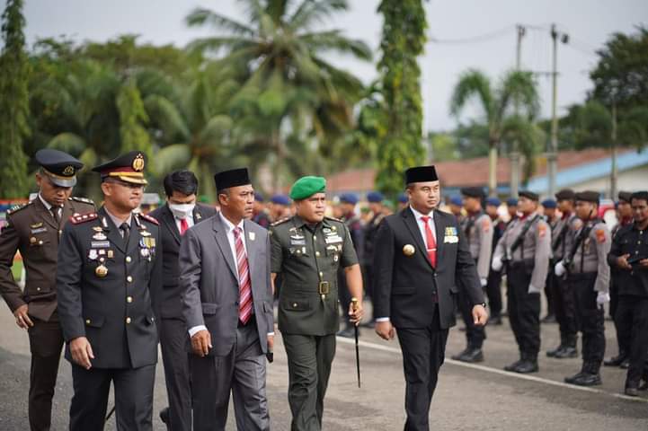 Bertindak selaku Inspektur Upacara, Kapolres Dharmasraya, AKPB Nurhadiansyah, serta turut dihadiri Bupati Dharmasraya, Sutan Riska Tuanku Kerajaan, Ketua DPRD Dharmasraya, Pariyanto, Dandim 0310/ SSD, Letkol Reno Handoko, Ketua Pengadilan Agama Pulau Punjung, M Rifai, Ketua KNPI Dharmasraya, Tedy Deska Putra, Sekretaris Daerah Adlisman beserta jajaran dan Walinagari Se Kabupaten Dharmasraya.