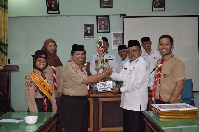 Lima Puluh Kota, SuhaNews – Usai dinobatkan sebagai Juara Umum pada Lomba Tingkat (LT) IV Kwarda Sumatra Barat, pada Sabtu malam (20/5) di Tiger Basscamp Lubuk Minturun, Regu Lili Pramuka Penggalang Gudep 06.094 Pangkalan MTsN 1 Lima Puluh Kota , dijamu oleh Kepala Kantor Kementerian Agama Kabupaten Lima Puluh Kota, H. Irwan, pada Senin siang (22/5). Bertempat di Aula VIP, jamuan syukuran ini juga dihadiri oleh Kasubbag Tata Usaha, H. Ifkar, Kepala Seksi, Ka. Kwarcab, Pengurus Baznas, Kamabigus, pembimbing, dan pelatih, serta undangan lainnya.