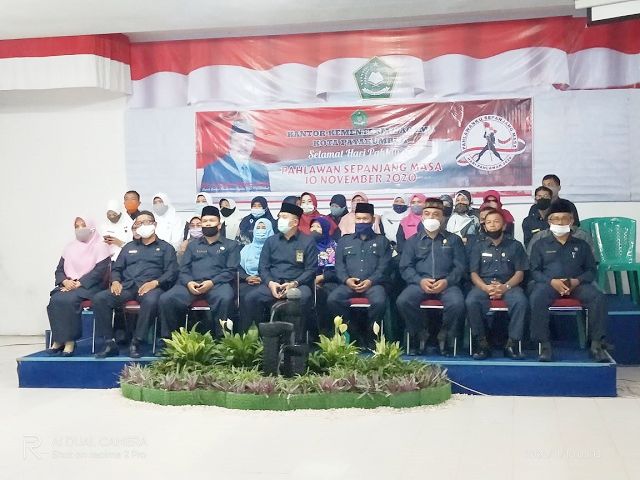 Payakumbuh, SuhaNews. Jajaran Kantor Kemenag Kota Payakumbuh yang dipimpin Kakankemenag H. Ramza Husmen mengikuti upacara peringatan upacara Hari Pahlawan secara virtual, Selasa (10/11) di aula kantor setempat.