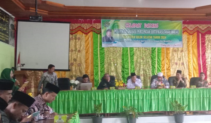 Padang Aro, SuhaNews – Kantor Kemenag Kabupaten Solok Selatan menggelar Sosialisasi Percepatan Sertifikasi Tanah Wakaf , Kamis (6/6) di Aula Quwwatul Ummah.