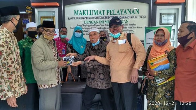 Bukittinggi, SuhaNews. Kakan Kemenag Kota Bukittinggi, diwakili Kasubbag Tata Usaha H. Zulfikar dan sejumlah pengurus FKUB Kota Bukittinggi menerima Kunjungan Silaturrahmi FKUB Sumbar Kamis, 24 Desember 2020 bertempat di Kantor Kemenag Kota Bukittinggi.