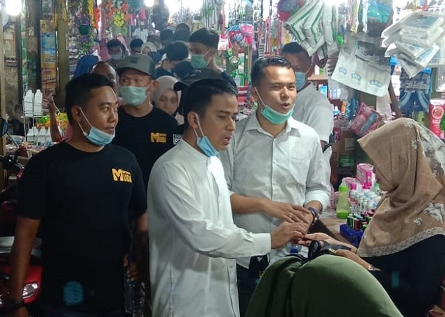 Dhani hanya tersenyum sambil menyalami beberapa pedagang. Dhani juga memberikan masker keopada para pedagang dan pengunjung pasar. Suasana akrab terlihat antara Dhani dan pedagang pasar raya Solok.