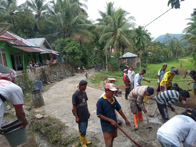 Masyarakat Siaru-Sulit Air Gotong Royong Kerjakan Jalan Lingkungan