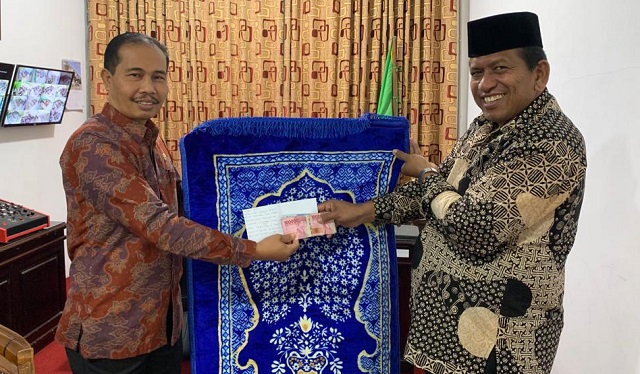 Bukittinggi, SuhaNews – Pengurus Musala Nurul Ikhlas MAN 2 Bukittinggi terima waqaf dari jama’ah Pengajian Subuh Mesjid Muslimin Pintu Kabun Kota Bukittinggi berupa uang tunai Rp. 2.700.000 dan satu helai sajadah untuk imam shalat.