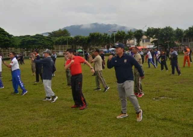 Lubuk Basung, SuhaNews – Dalam rangka mempererat silaturrahmi, Polres Agam gelar olahraga bersama di kompleks GOR Rang Agam Lubuk Basung sebagai wujud sinergi Polri, TNI dan jajaran pemerintah daerah.