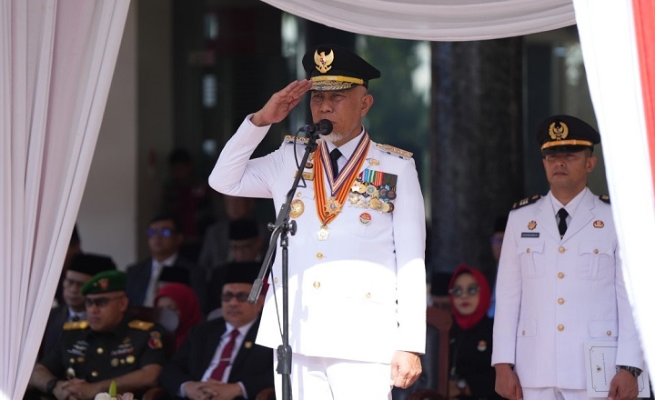 SuhaNews | Gubernur Sumatera Barat (Sumbar), Mahyeldi Ansharullah memimpin upacara peringatan Hari Otonomi Daerah ke-30 yang digelar di halaman Kantor Gubernur, Senin (27/4/2026).