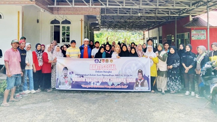 Pariaman, SuhaNews – Kwartir Ranting (Kwarran) 031604 Pariaman Timur, Kota Pariaman melaksanakan kegiatan Bakti Sosial (Baksos) di Mushala Rumbio, Desa Kampung Tangah, Sabtu (14/2/2026).