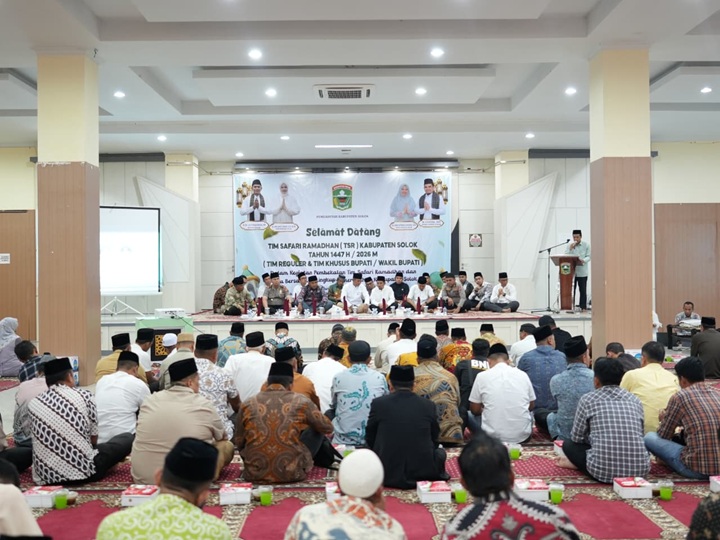 Arosuka, SuhaNews – Pemerintah Kabupaten Solok memberikan Pembekalan dan buka puasa bersama Tim Safari Ramadhan (TSR) Kabupaten Solok di Masjid Agung Darussalam Islamic Center, Jumat (20/02/2026).