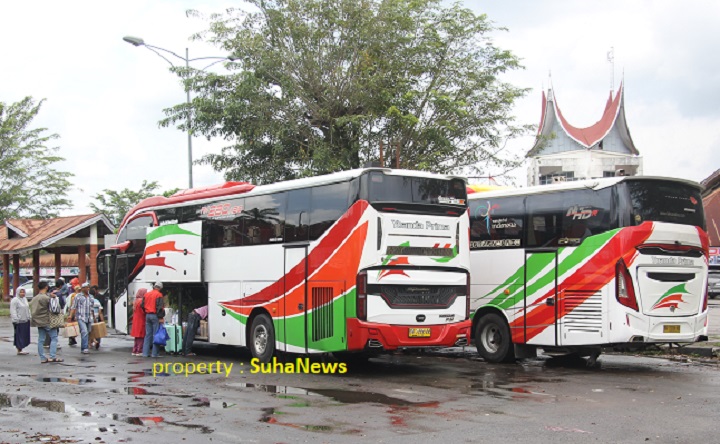 SuhaNews | Efek sepinya penumpang bus Antar Kota Antar Porpinsi (AKAP) dari Sumbar tujuan berbagai kota di Sumatera dan Jawa, operator bus melakukan transfer penumpang di terminal Bareh Solok, Rabu (4/3).