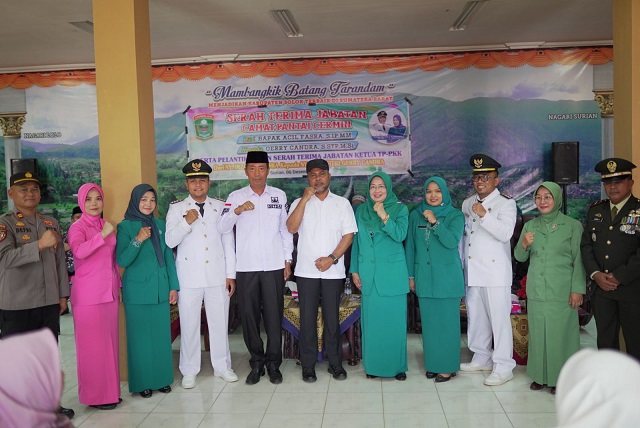 Sertijab ini juga dihadiri Staf Ahli Bidang Pemerintahan, Hukum dan Politik Safrudin S. Sos, M. Si., Sekretaris TP-PKK Kab. Solok Retni Humaira ST., Forkopimcam, Kepala OPD, Anggota TP-PKK, Wali Nagari dan tokoh masyarakat.