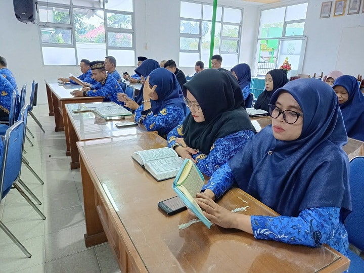 Koto Baru, SuhaNews – Tahsiniul Qur’an yang diikuti oleh seluruh ASN Kantor Kemenag kabupaten Solok, Jumat (17/1) pagi di aula Hubbul Wathan membahas surat Al Israq.