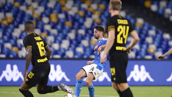 Salah satunya seperti di menit ke-22 saat Samir Handanovic salah membuang bola korner dan jatuh di kaki Dries Mertens yang mengopernya kepada Lorenzo Insigne. Beruntung bola sepakannya melayang di atas mistar.