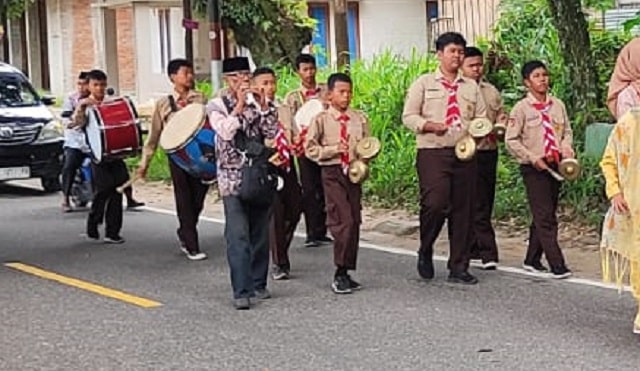 “Alhamdulillah, siswa kami kembali dapat mengiringi upacara pernikahan ini baik. Sebelumnya, juga tampil mengiringi arak-arakan Mubes Alumni SMP Pitalah.