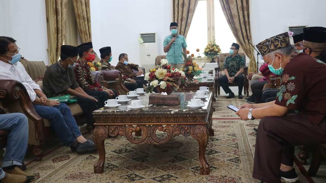 SuhaNews.— Puluhan ninik mamak yang berasal dari dua kabupaten di Sumatera Barat, yakni Solok Selatan dan Pesisir Selatan, menemui Gubernur Sumatera Barat Irwan Prayitno di kediamannya, Sabtu (5/12/20).