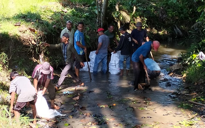 Disampaikannya, gotong royong yang dilaksanakan Sabtu untuk menambah luas / panjang kawasan ikan larangan mulai dari Masjid Taqwa hingga lebih kurang 1 km ke arah hulu anak sungai.
