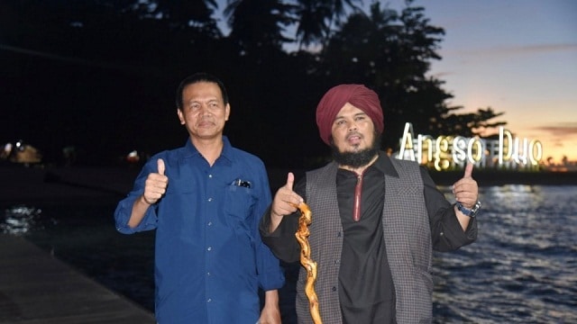 “Hallo dunsanak kasadonyo (hai saudaraku sekalian), ambo kini sadang di Pulau Angso Duo (saya sekarang sedang berada di Pulau Angso Duo) salahsatu destinasi wisata terbaik di Kota Pariaman. Dunsanak kasadonyo wajib datang ka Pariaman (saudaraku sekalian wajib datang ke Kota Pariaman), pulang kampuang dari rantau jan lupo main ka Pariaman (pulang kampung dari rantau jangan lupa main ke Kota Pariaman), insyaallah objek wisata disini terbaik ,” ujar Derry Sulaiman.